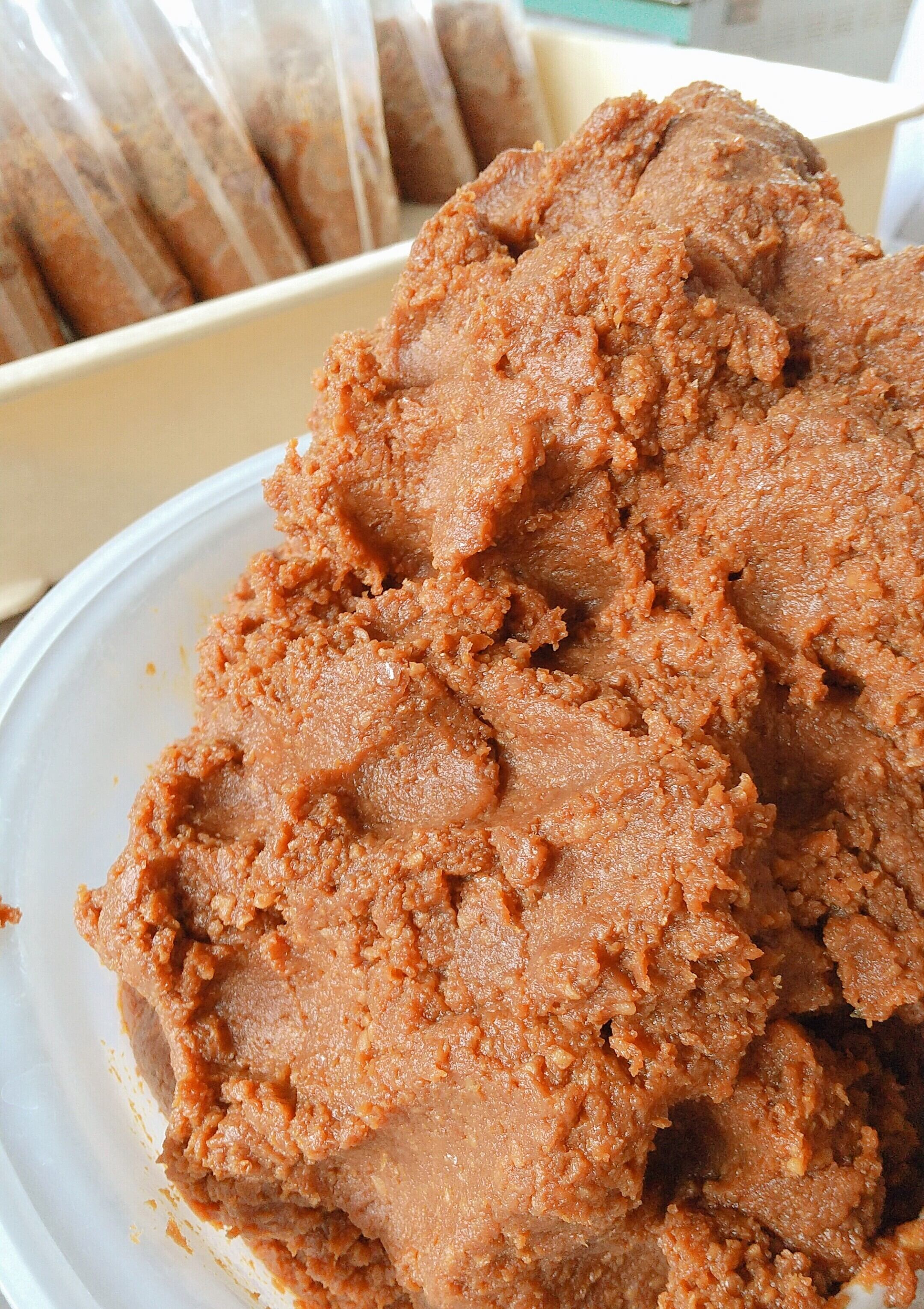 実はこれも十分に贅沢なつくりのお味噌なのですが、さらに糀を1.2倍に増やし、米の旨味が増したよりコク深い美味しさに仕上げた「十二割糀味噌」ができました。